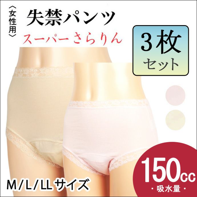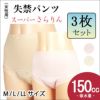 【送料無料/3枚セット】 【スーパーさらりん】失禁パンツ【パッド部150cc】【M/L/LL】ベージュ・ピンク/尿漏れショーツ失禁女性用