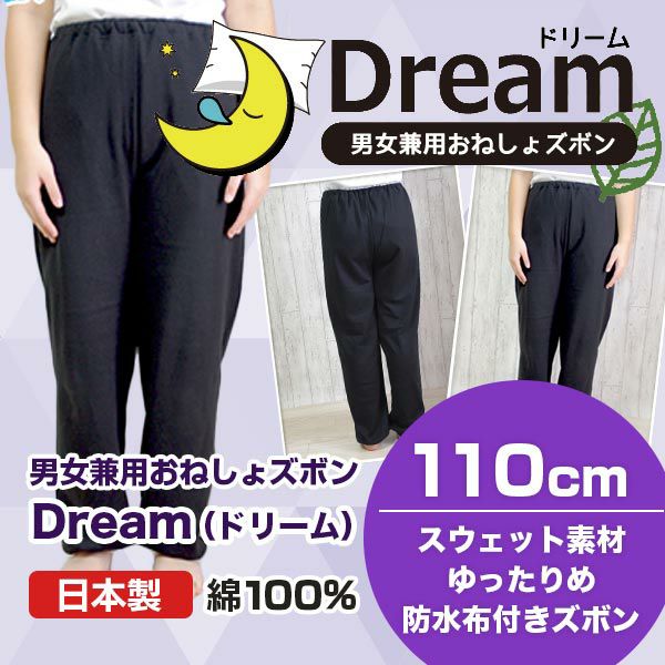 【Dream(ドリーム)】男女兼用おねしょズボン【防水布付き】【110cm】夜尿症/綿100%/日本製