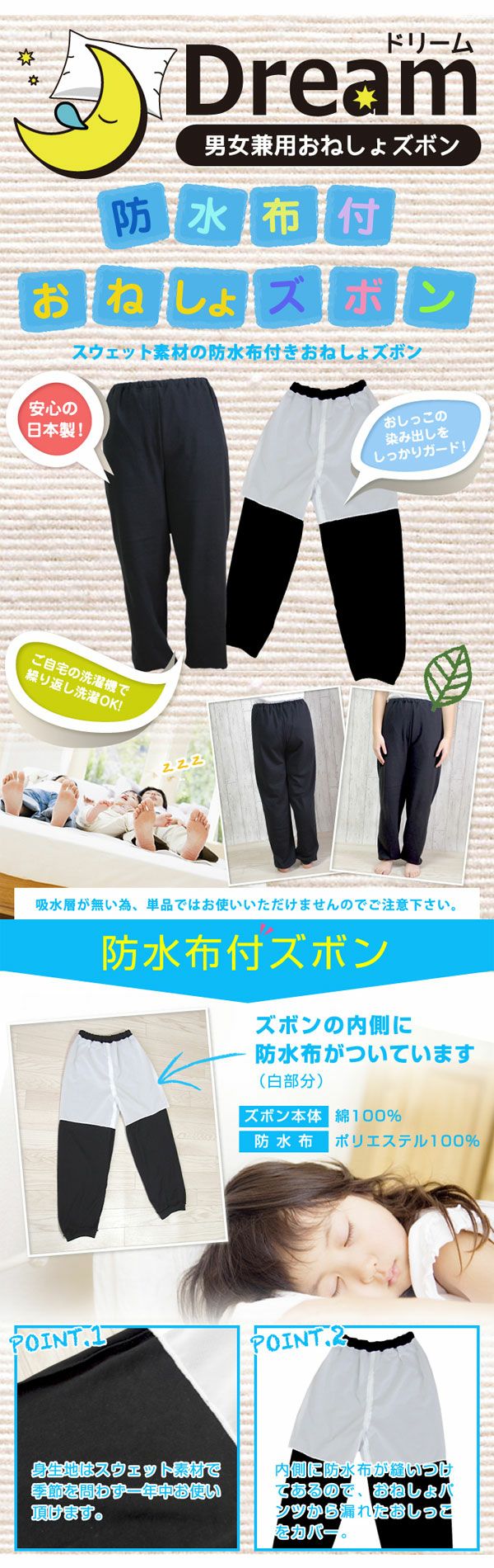 他の画像を見る spz008 【Dream(ドリーム)】男女兼用おねしょズボン【防水布付き】【180cm】夜尿症/綿100%/日本製 当店特別価格 ¥ 4,583 税込 在庫切れ 詳細を見る お気に入りに登録する