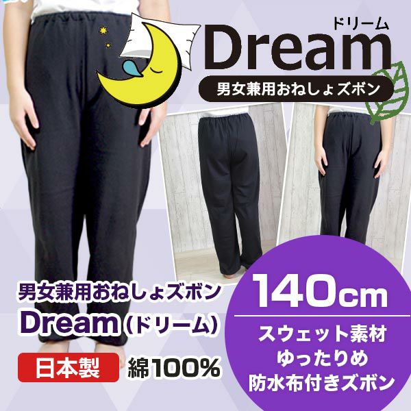 【Dream(ドリーム)】男女兼用おねしょズボン【防水布付き】【140cm】夜尿症/綿100%/日本製