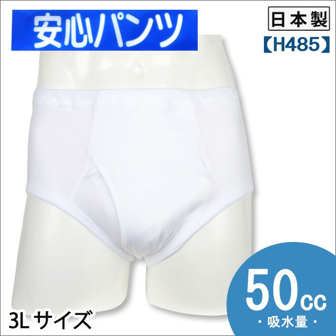 【ニシキ】【H485】安心パンツ【腰ゴムブリーフ】【前開きタイプ】【50cc】【3L】ホワイトのみ/綿100%/日本製/尿漏れパンツ失禁男性用