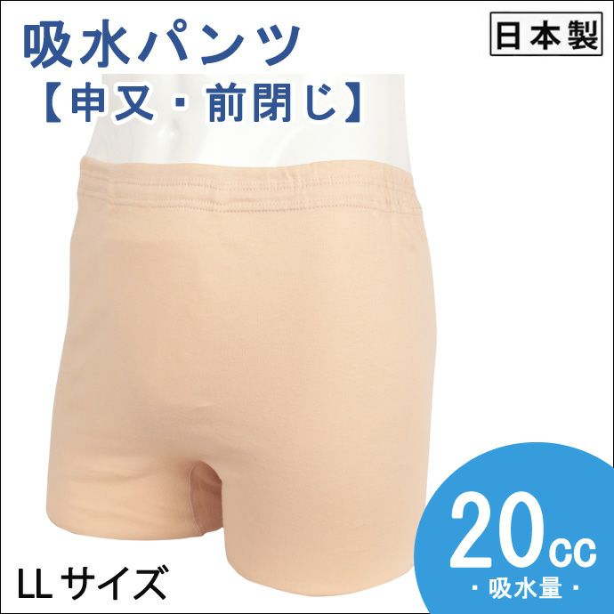 kh00024 【キャロン】吸水パンツ【前閉じ/申又タイプ】【20cc】【LL】【ベージュのみ】綿100%/日本製/尿漏れパンツ失禁男性用【メール便対応/1枚まで】