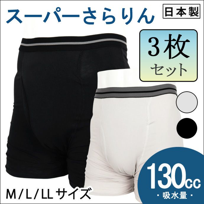 • 【スーパーさらりん】ボクサータイプ【130cc】ブラック・ライトグレー/日本製/尿漏れパンツ失禁男性用