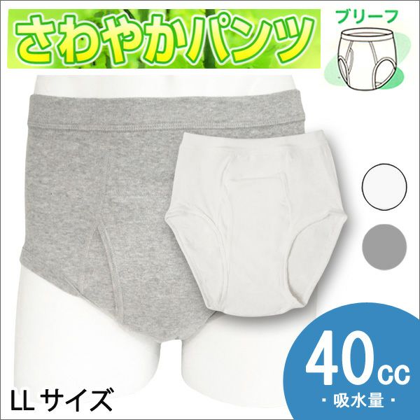 spm00044 【ウエル】さわやかパンツ【ブリーフタイプ】【40cc】【LL】グレー・ホワイト/綿100%/尿漏れパンツ失禁男性用【メール便対応/2枚まで】