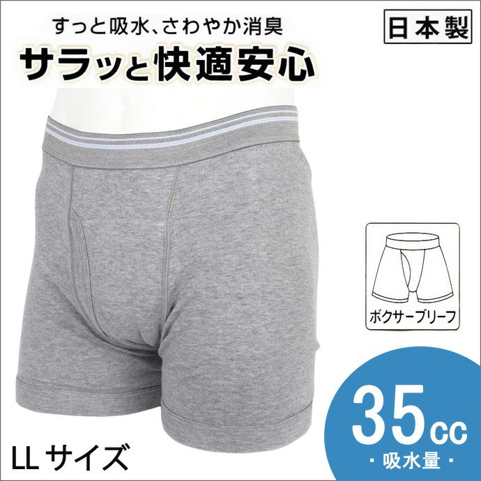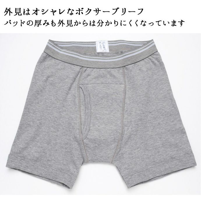 spm00005 【Nojima(ノジマ)】サラッと快適安心【前開きボクサータイプ】グレーのみ【35cc】【M/L】綿100%/日本製/尿漏れパンツ失禁男性用【メール便対応/1枚まで】