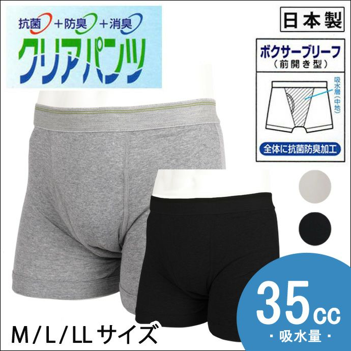 spm00014 クリアパンツ【ボクサーブリーフ/前開き型】【30cc】【M/L/LL】ブラック・グレー/綿100%/日本製/尿漏れパンツ失禁男性用【メール便対応/1枚まで】