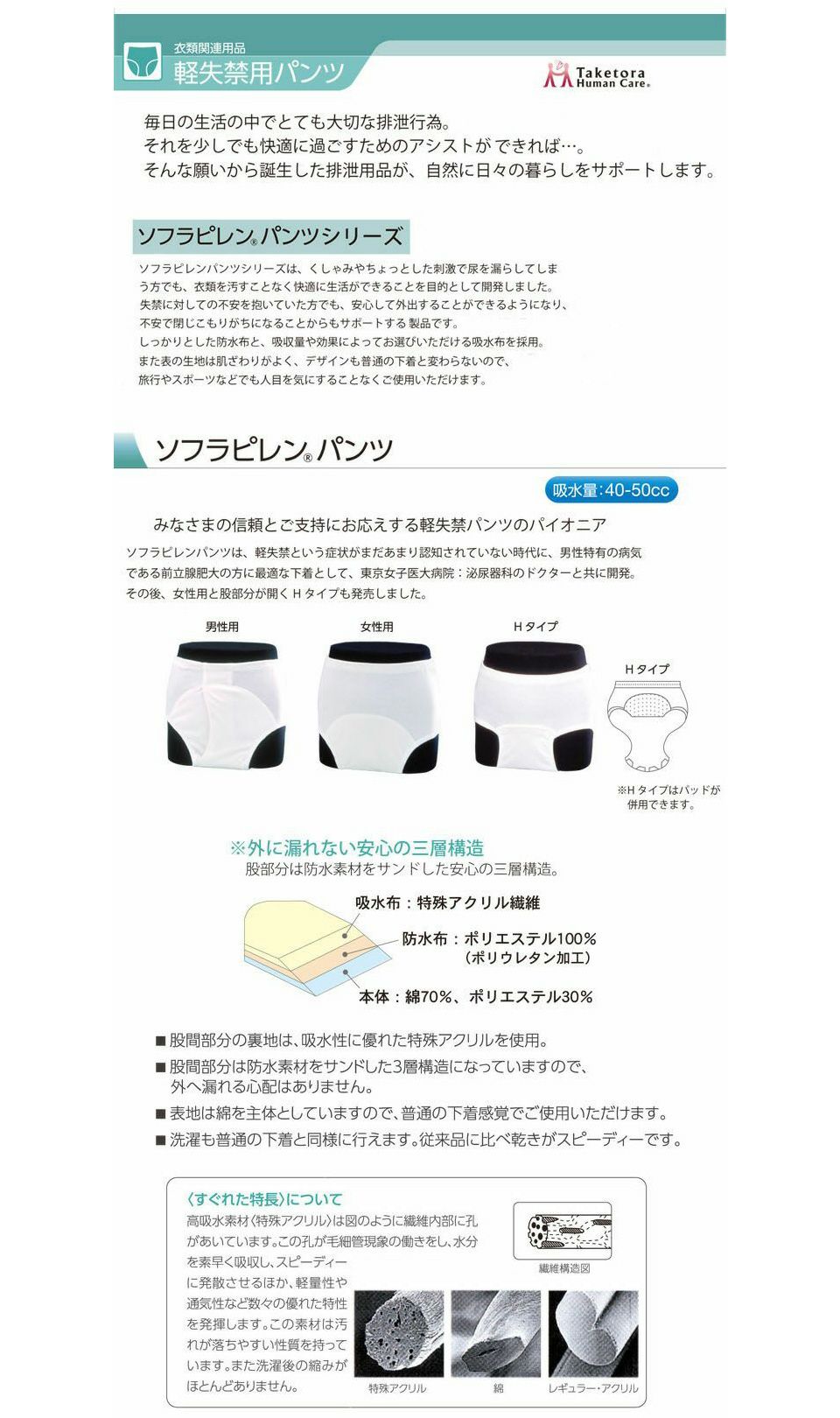 spm00023 【竹虎】ソフラピレンパンツ【男性用ブリーフ】【50cc】【S/M/L/LL/3L】日本製/尿漏れパンツ失禁男性用【メール便対応/2枚まで】