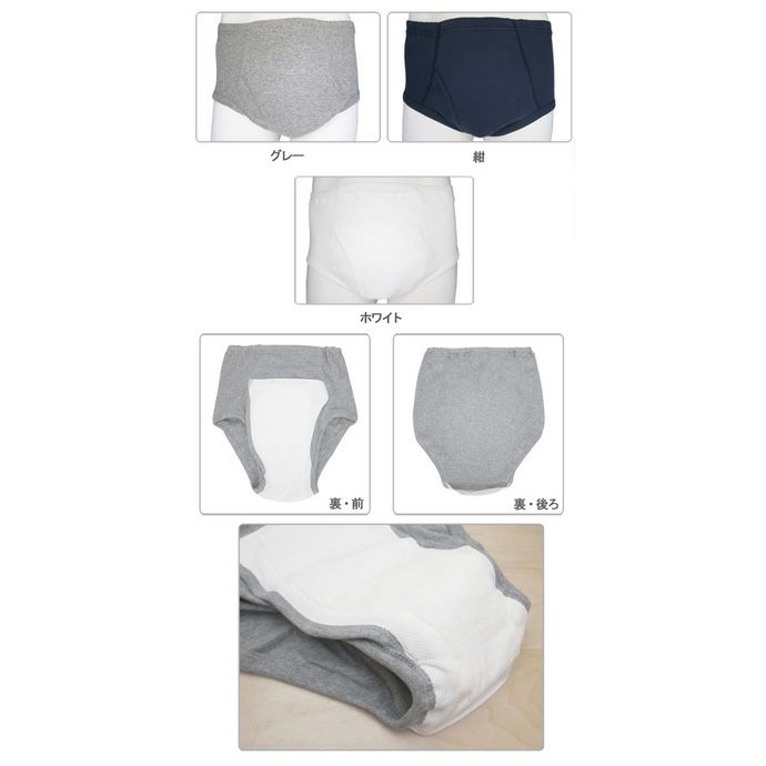 spm00013 【ニシキ】【B485】安心パンツ【前開き・腰ゴムブリーフ】【50cc】【S/M/L/LL】グレーのみ/綿100%/尿漏れパンツ失禁男性用【メール便対応/1枚まで】