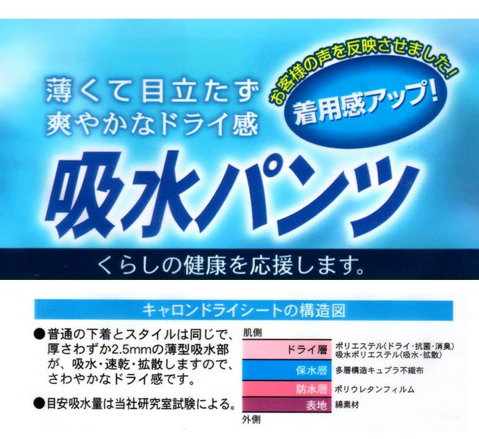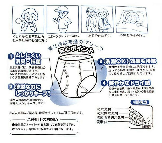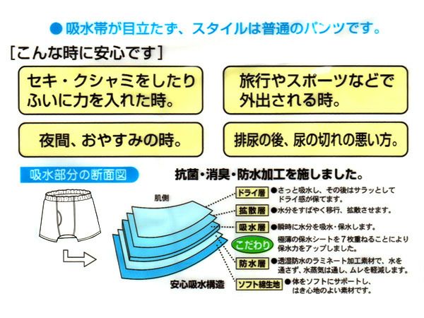 男性用 尿漏れパンツ 中失禁(21~50㏄まで)