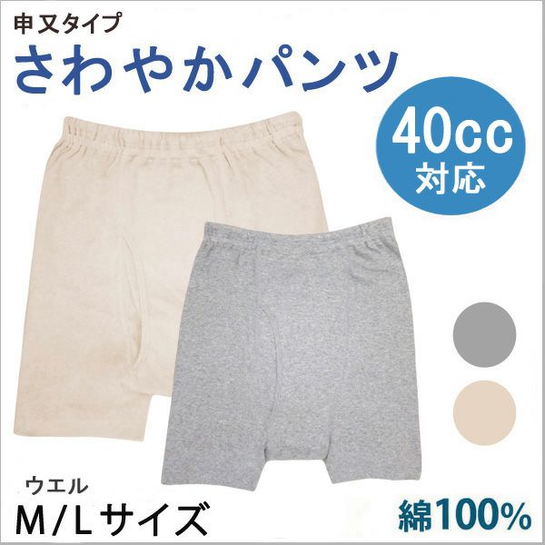 spm00046 【ウエル】さわやかパンツ【申又タイプ】【40cc】【M/L】グレー・ベージュ/綿100%/尿漏れパンツ失禁男性用