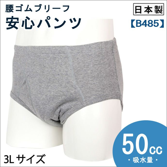 【ニシキ】【B485】安心パンツ【前開き・腰ゴムブリーフ】【50cc】【3L】グレーのみ/綿100%/日本製/尿漏れパンツ失禁男性用