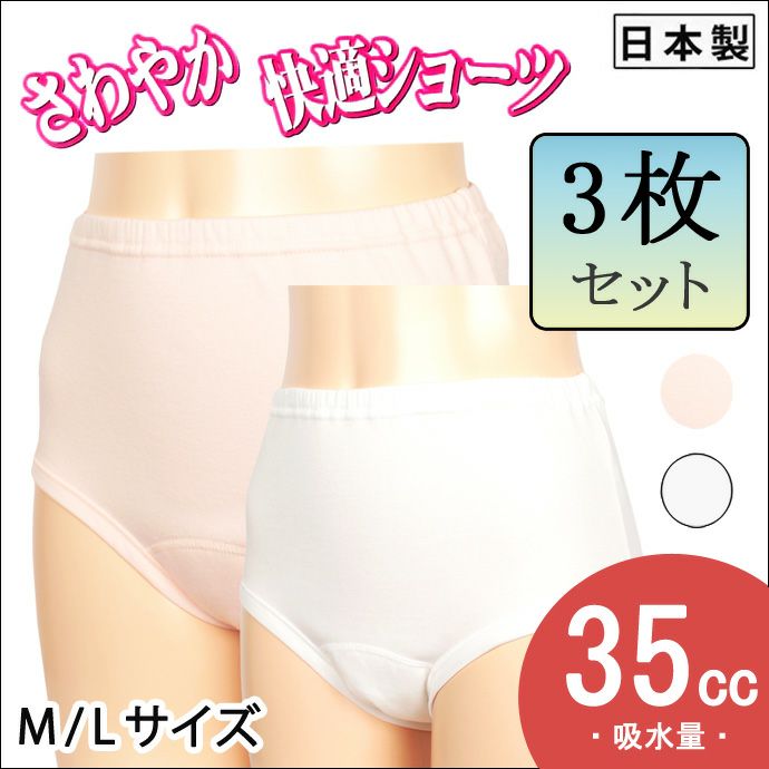 sho00056s3 【3枚セット】【Nojima(ノジマ)】さわやか快適ショーツ【パッド部35cc】【M/L】綿100%/日本製/尿漏れショーツ失禁女性用