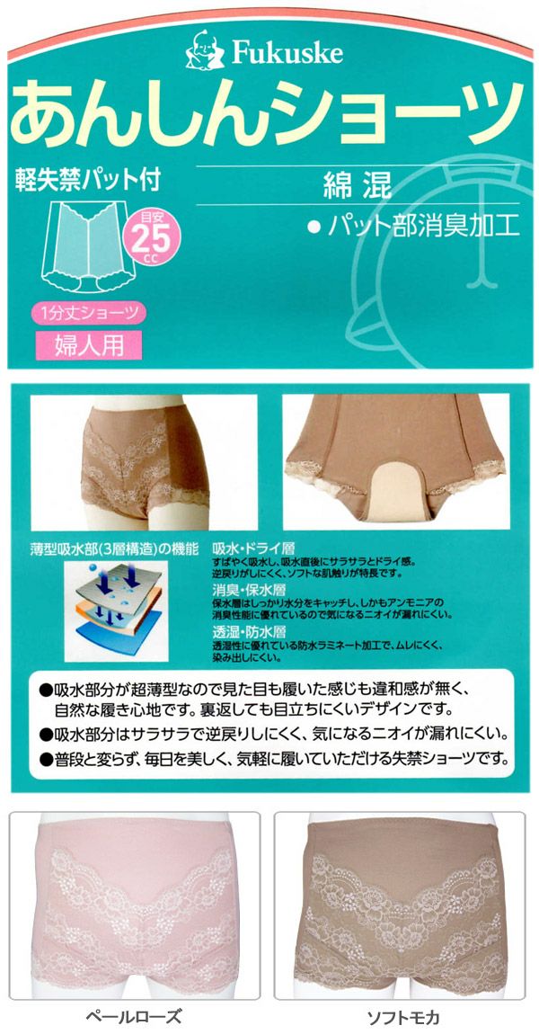 他の画像を見る sho00021 【福助・楽健】あんしんショーツ【1分丈タイプ】【パッド部25cc】【M/L】尿漏れショーツ失禁女性用 定価 ¥ 2,500 のところ 当店特別価格 ¥ 2,000 税込 在庫切れ カートに入れる お気に入りに登録する