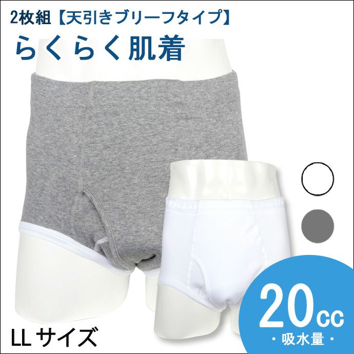 • 【グンゼ】【2枚組】【HW8231】らくらく肌着【ブリーフ前あき】【20cc】【M/L】綿100%/グレー杢・ホワイト/尿漏れパンツ失禁男性用