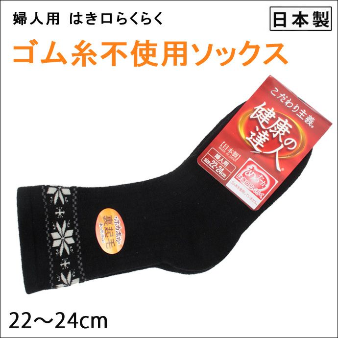 【婦人用】【oh217】健康の達人・ゴム糸不使用パイルソックス【雪柄】【はき口らくらく】【22~24cm】レディース/裏起毛/冷え取り/防寒/日本製【メール便対応/2個まで】