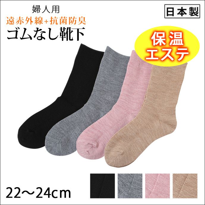 【sa1378-8022】【保温エステ】婦人用靴下【ゴムなし】【22~24cm】ブラック・グレー・ベージュ・ピンク/日本製【メール便対応/2枚まで】