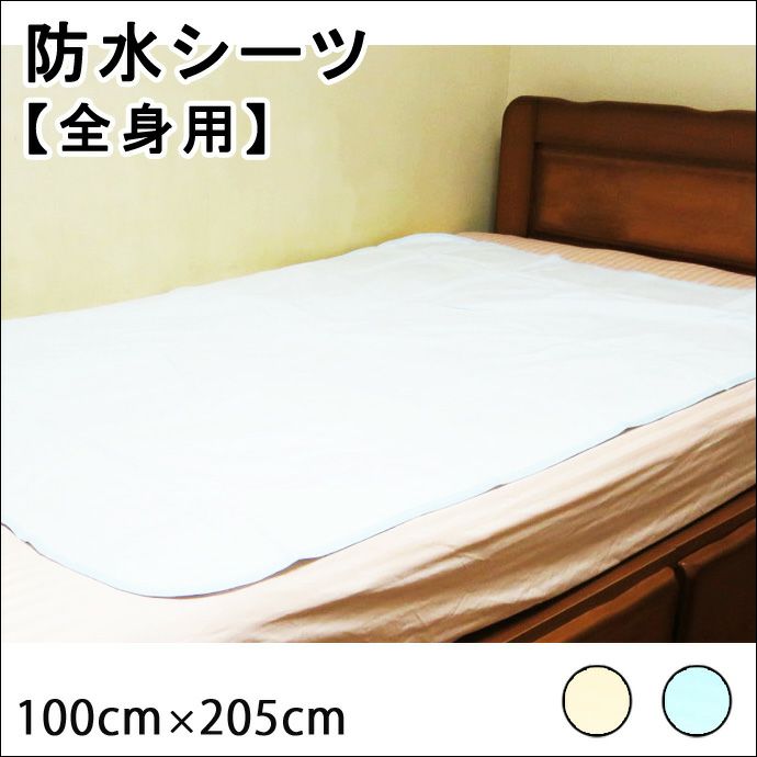 【全身タイプ】防水シーツ【100cm×205cm】【丸洗いOK】【ズレ防止ゴム付き】サックス・クリーム/綿100%(表面)