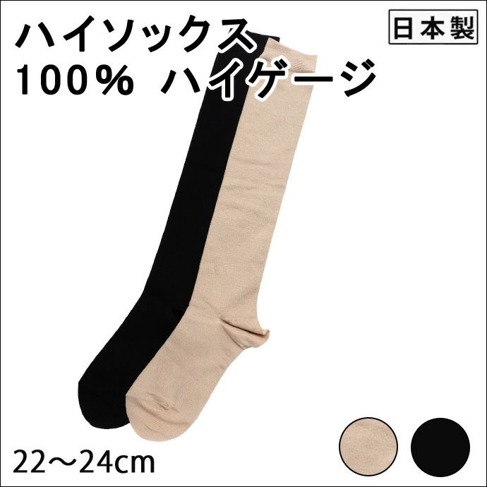 【絹100%ハイゲージ】ハイソックス【22~24㎝】【149-100】ベージュ・黒/シルク/日本製【メール便対応/2枚まで】