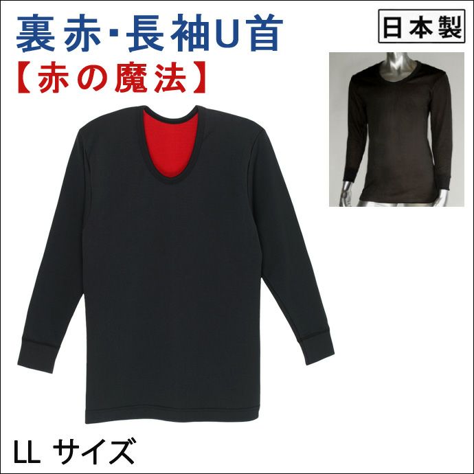 n508 【Nojima(ノジマ)】【裏赤】紳士肌着【長袖U首】【LL】冷え取り/防寒/チャコールのみ/綿100%/日本製