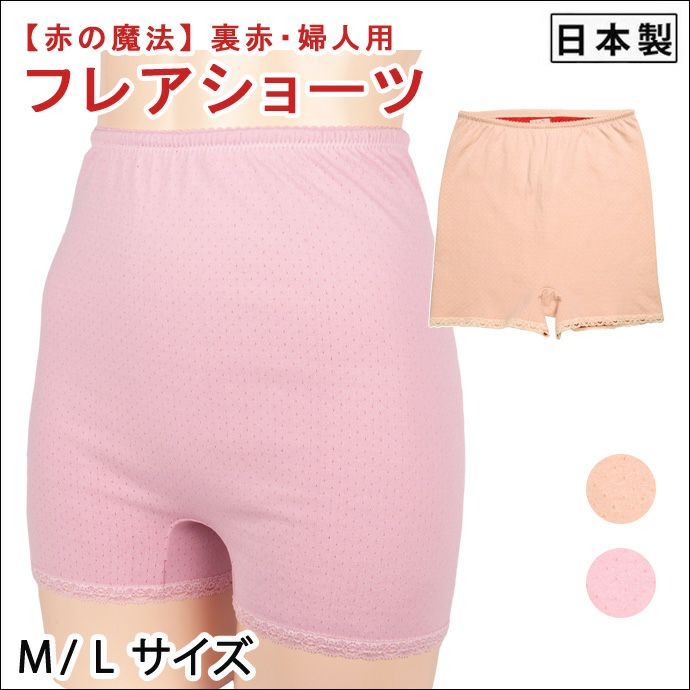 ns005 【Nojima(ノジマ)】【裏赤】女性肌着【フレアーショーツ】【M/L】冷え取り/防寒/ベージュ・ピンク/綿100%/日本製【メール便対応/2個まで】