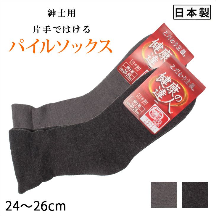【紳士用】【oh214】健康の達人・片手ではけるソックス【24~26cm】チャコール・グレー/日本製【メール便対応/4個まで】