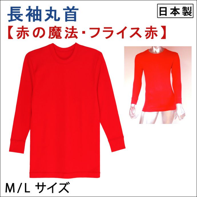 【Nojima(ノジマ)】【赤の魔法】紳士肌着【フライス赤】【長袖丸首】【M/L】冷え取り/防寒/赤のみ/綿100%/日本製