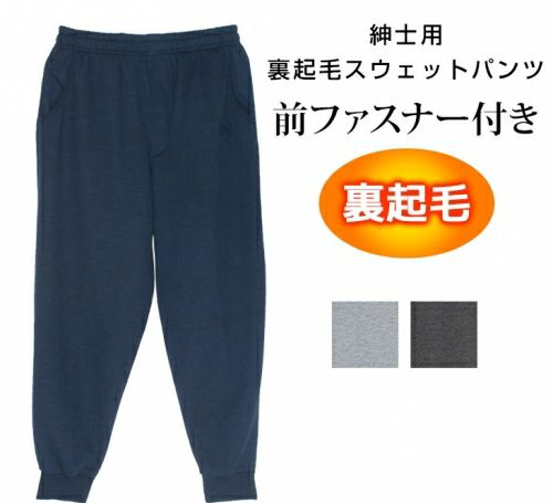 【紳士】裏起毛スウェットパンツ【M/L/LL/3L】前ファスナー付き/裏起毛