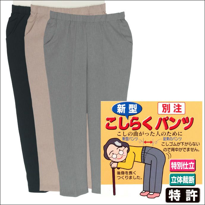 【夏用】背中が出にくい深ばきパンツ【腰らくパンツ】【M/L/LL/3L】ベージュ・グレー・紺/股下56cm/日本製